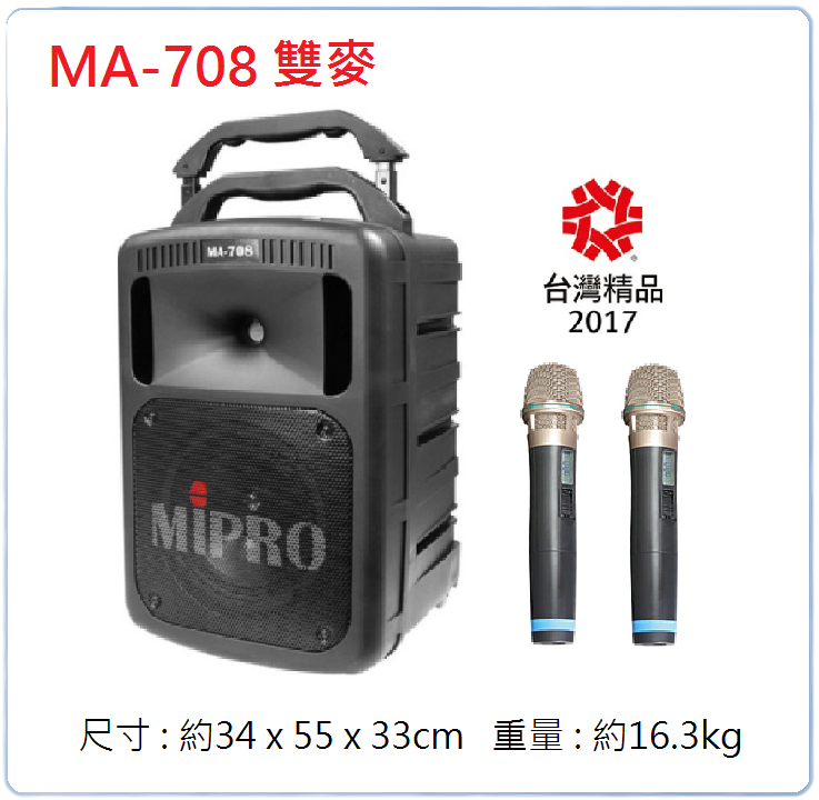 MIPRO MA-708雙麥 同步雙喇叭